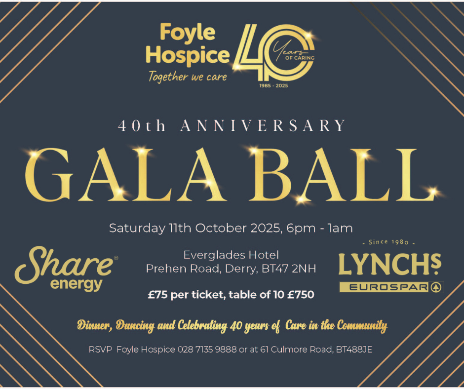 You are invited to our 40th Anniversary Gala Ball taking place in the beautiful Everglades Hotel on the 11th of October 2025. Enjoy a magical evening of dinner, dancing and celebrating 40 years of care in the North West.