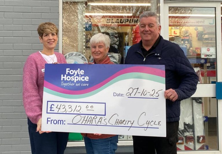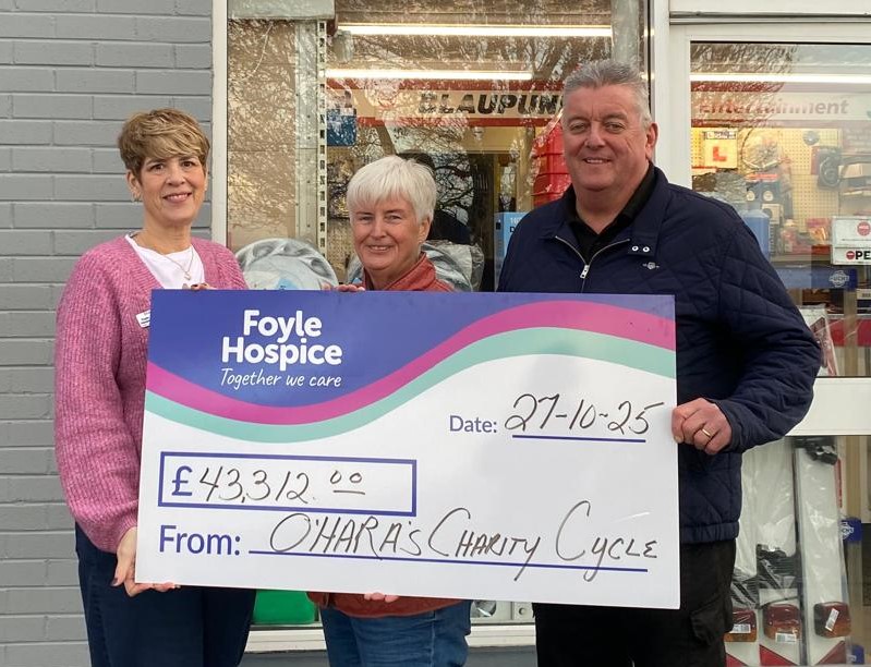 The Team from James O’Hara & Sons Motors, Ballykelly, along with a dedicated group of local volunteers have raised a remarkable £43,312, in support of Foyle Hospice, proceeds from the Annual ‘North Coast Cycle Challenge.'